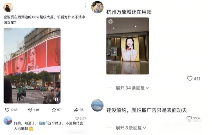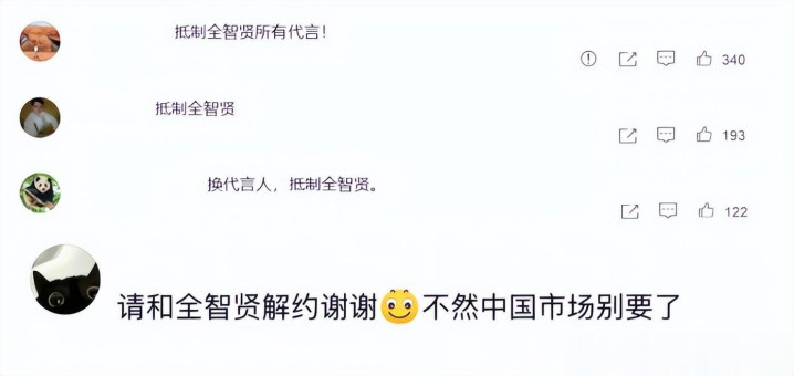 在关于她代言的高级奢饰品的评论区里都出奇的一致,希望换掉代言人,如果不采取措施的话将会把品牌、化妆品等全都换掉。