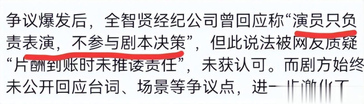 只是工作室里发出解释表示“演员只负责演技,不掺和剧本”,轻描淡写的一句话也不管用。