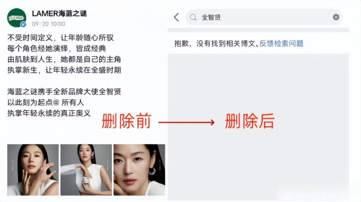 就连剧中出现的海蓝之谜也遭受这一波冲击,全智贤拿着产品在剧中有几秒的特写,这些对品牌造成很大的影响和伤害。